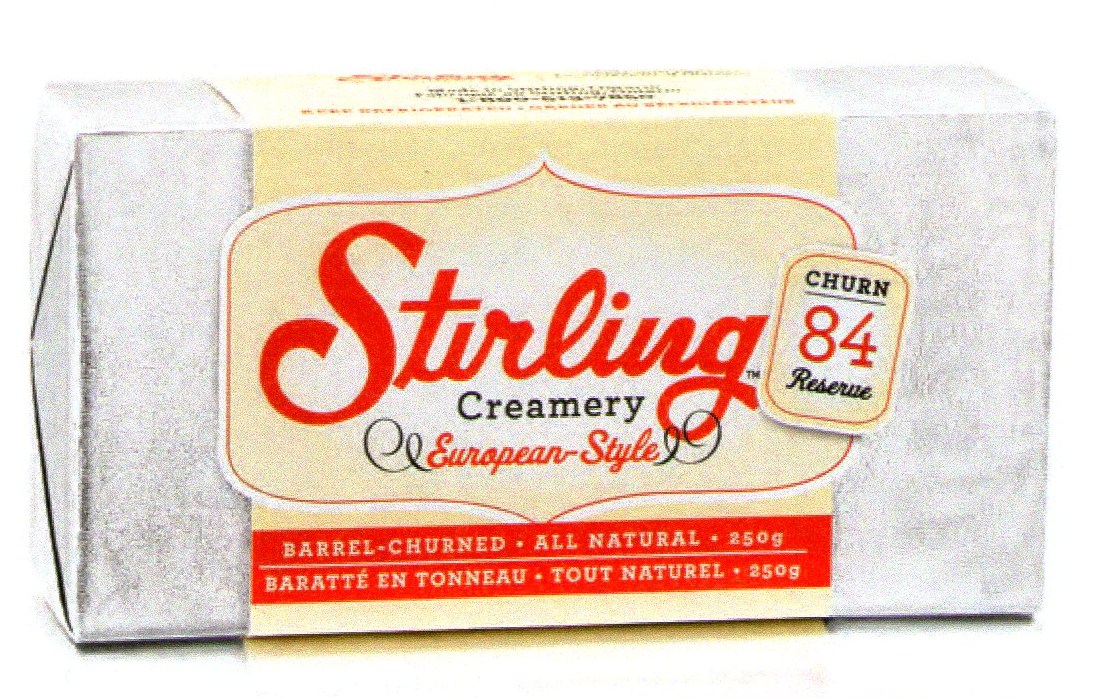 Stirling’s master butter man Chet Blair said the lightly-salted 84 (regular Canadian butter contains 80% butterfat) starts with superb cream and contains less water than regular butter, giving it a dense, creamy texture and more pronounced dairy flavour. It’s especially lovely in shortbread cookies.