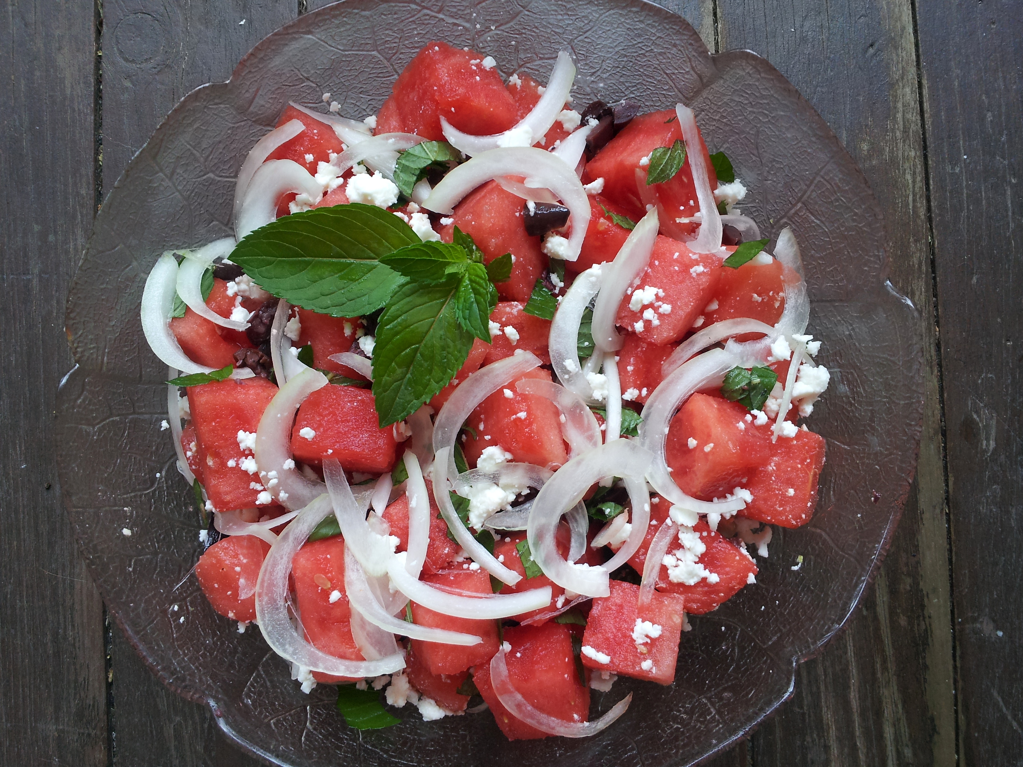 Watermelon & Sweet Onion Salad with Feta and Mint