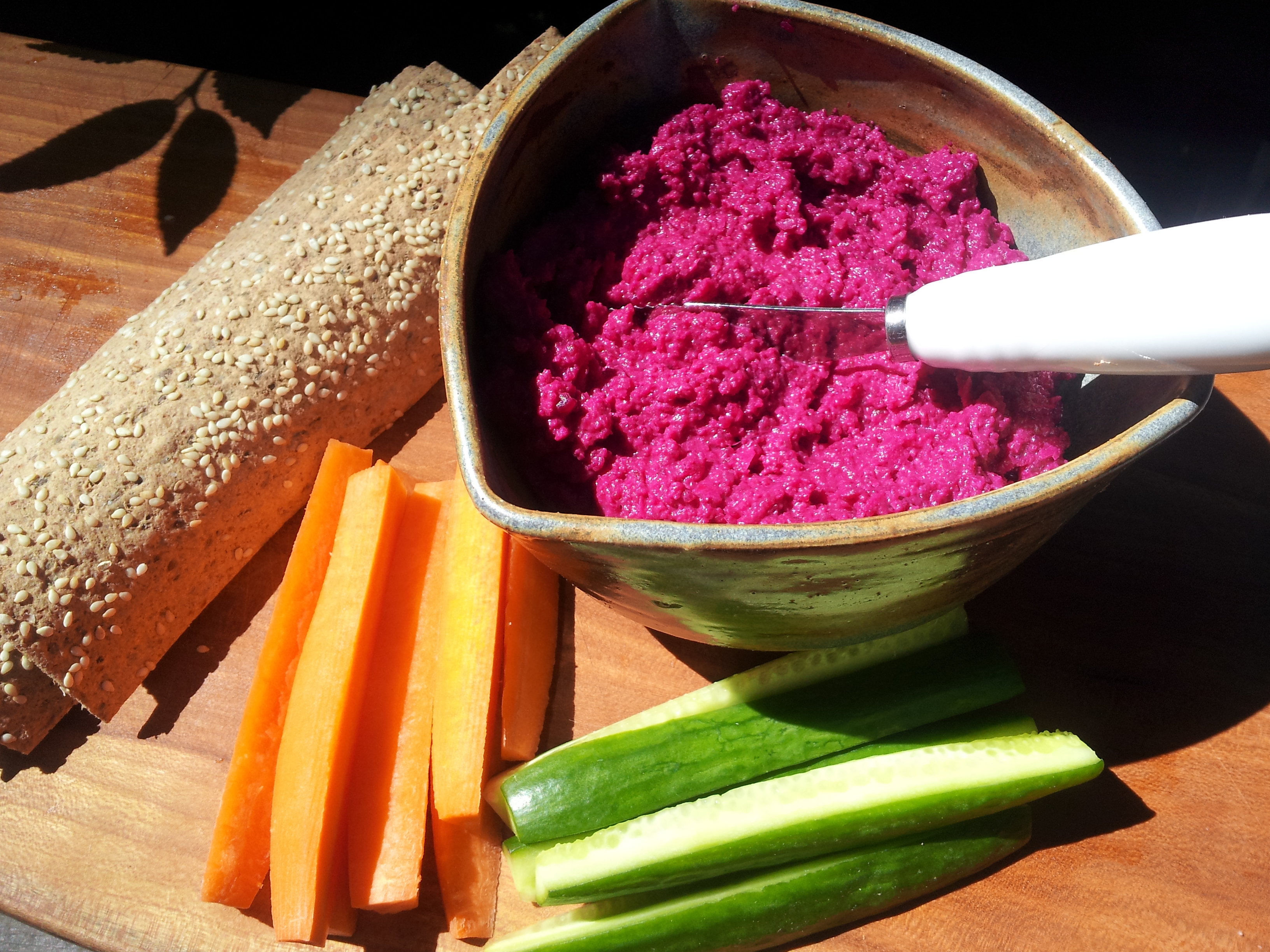 Wow! That Beet Hummus is addictively delicious. OK, I’m the first to admit – those dreaded remembered beets from childhood can actually taste good.
