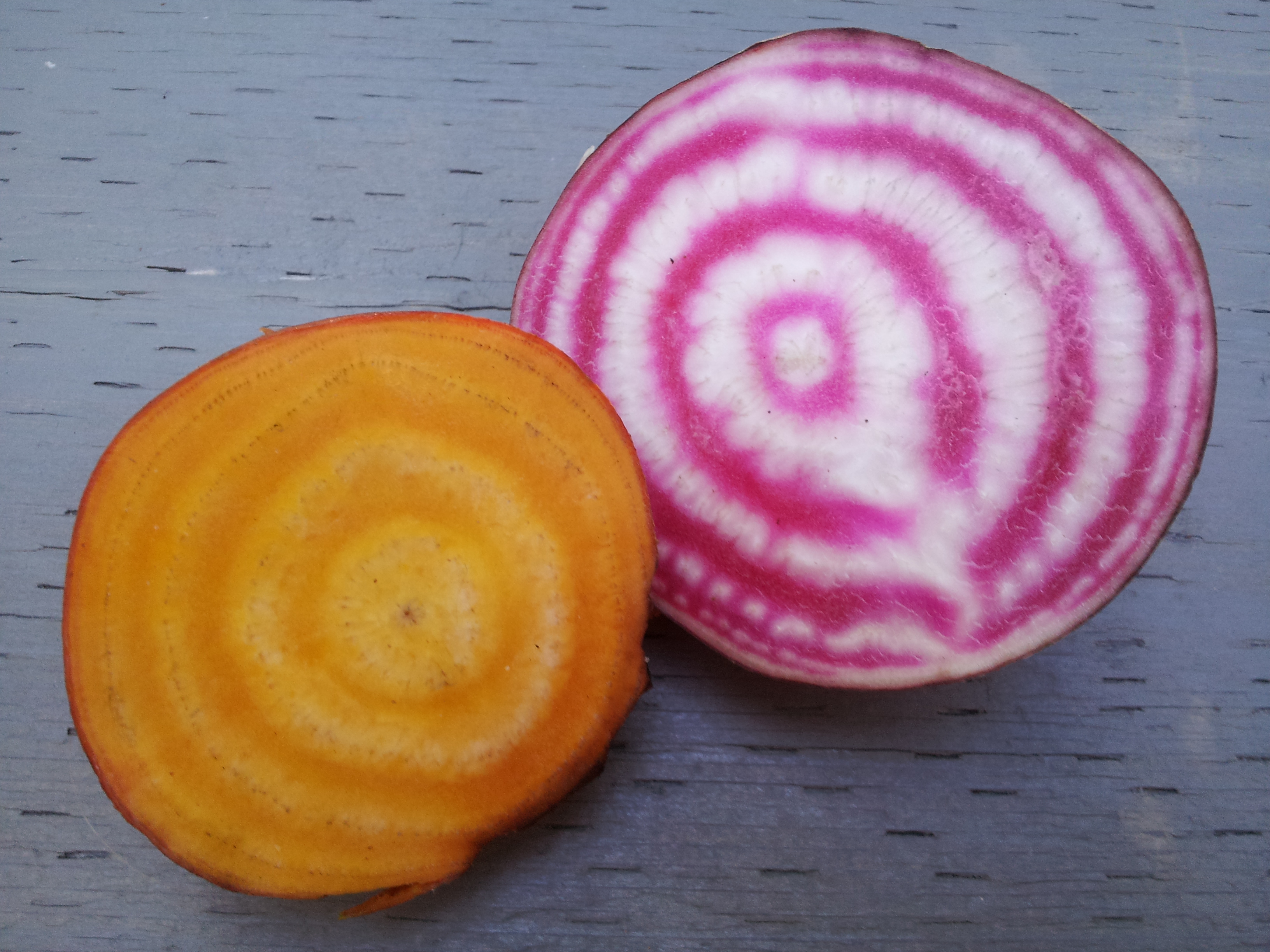 Golden beets, with their orange skin and deep yellow flesh, are milder and a little less earthy than red beets. Sweeter candy cane-striped Chioggia beets are psychedelic when raw but their stripes can fade when cooked.