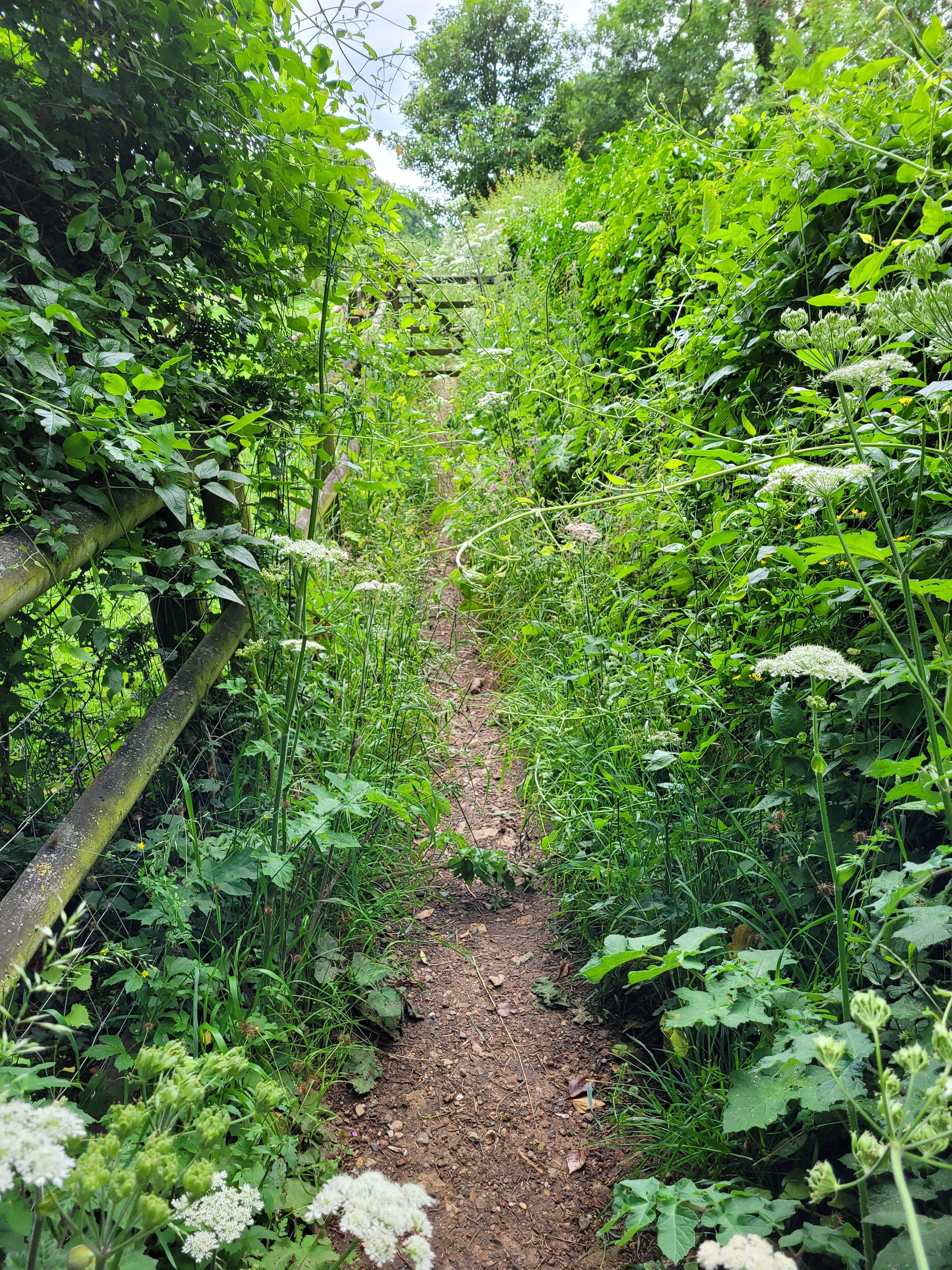 By this point I was walking through a field of blue-grey wheat with bushy stalks. How kind of the farmer to mow a path through his crop for strangers, I thought, not realizing he had no choice as footpaths are considered public land.