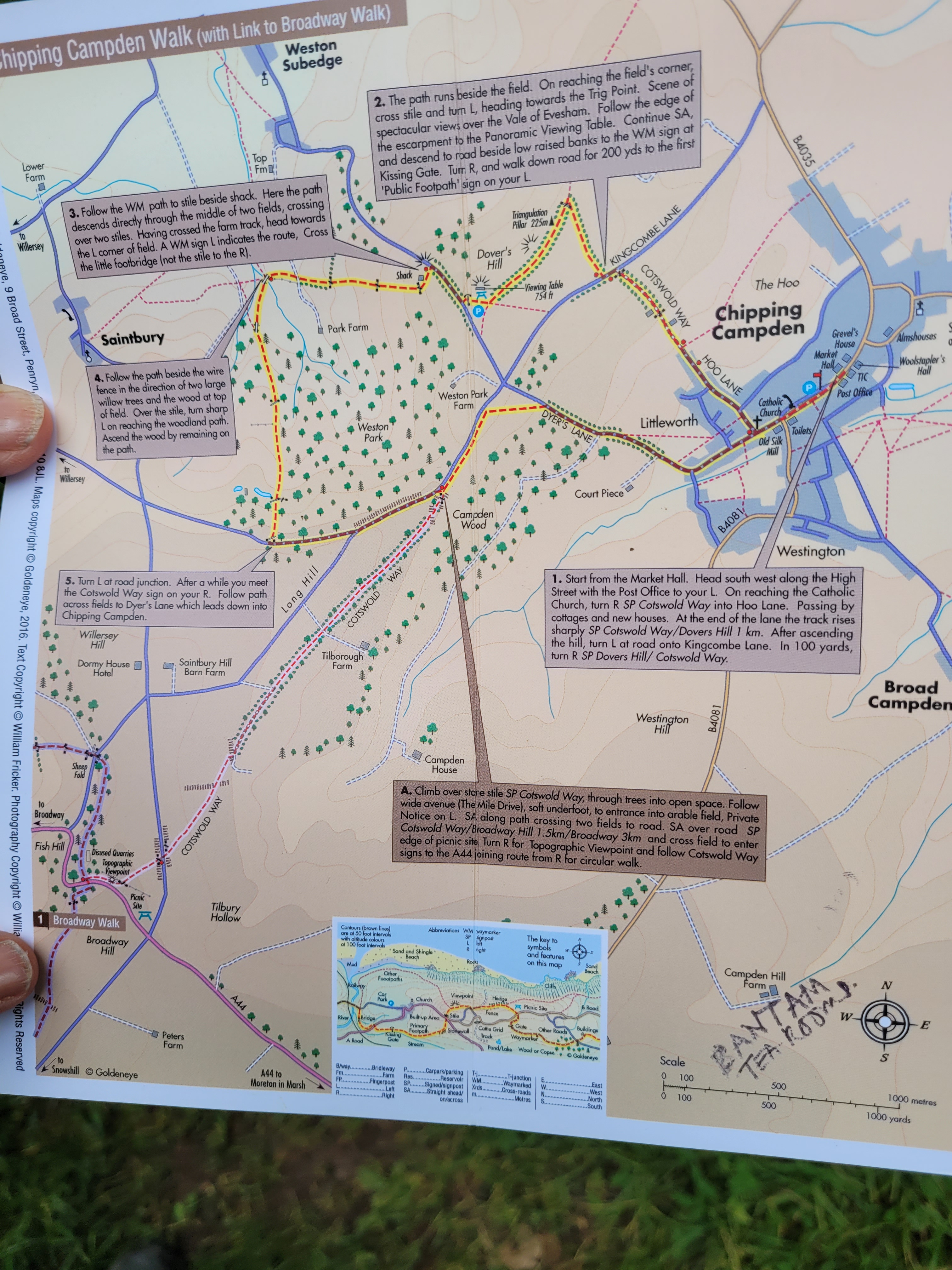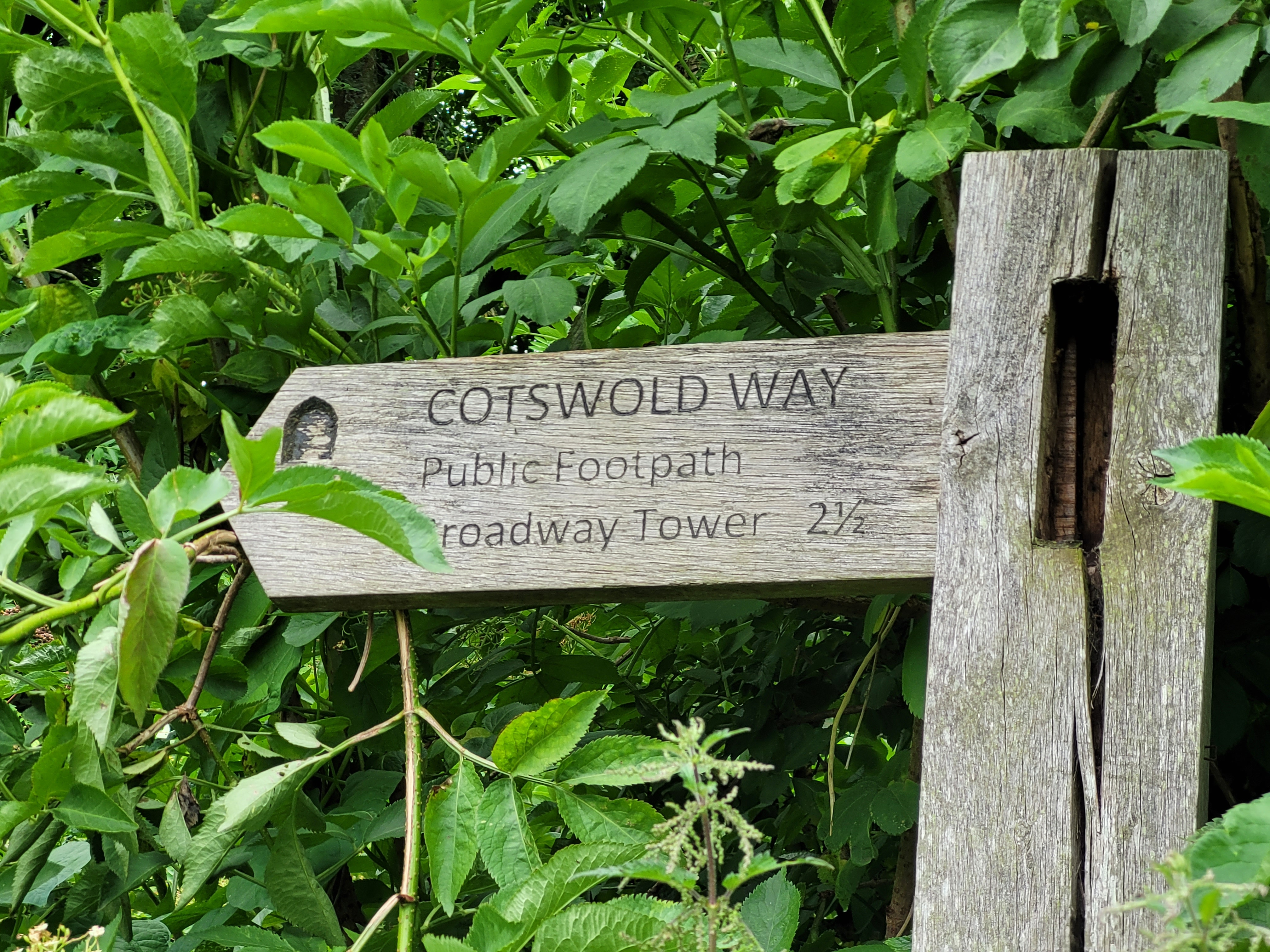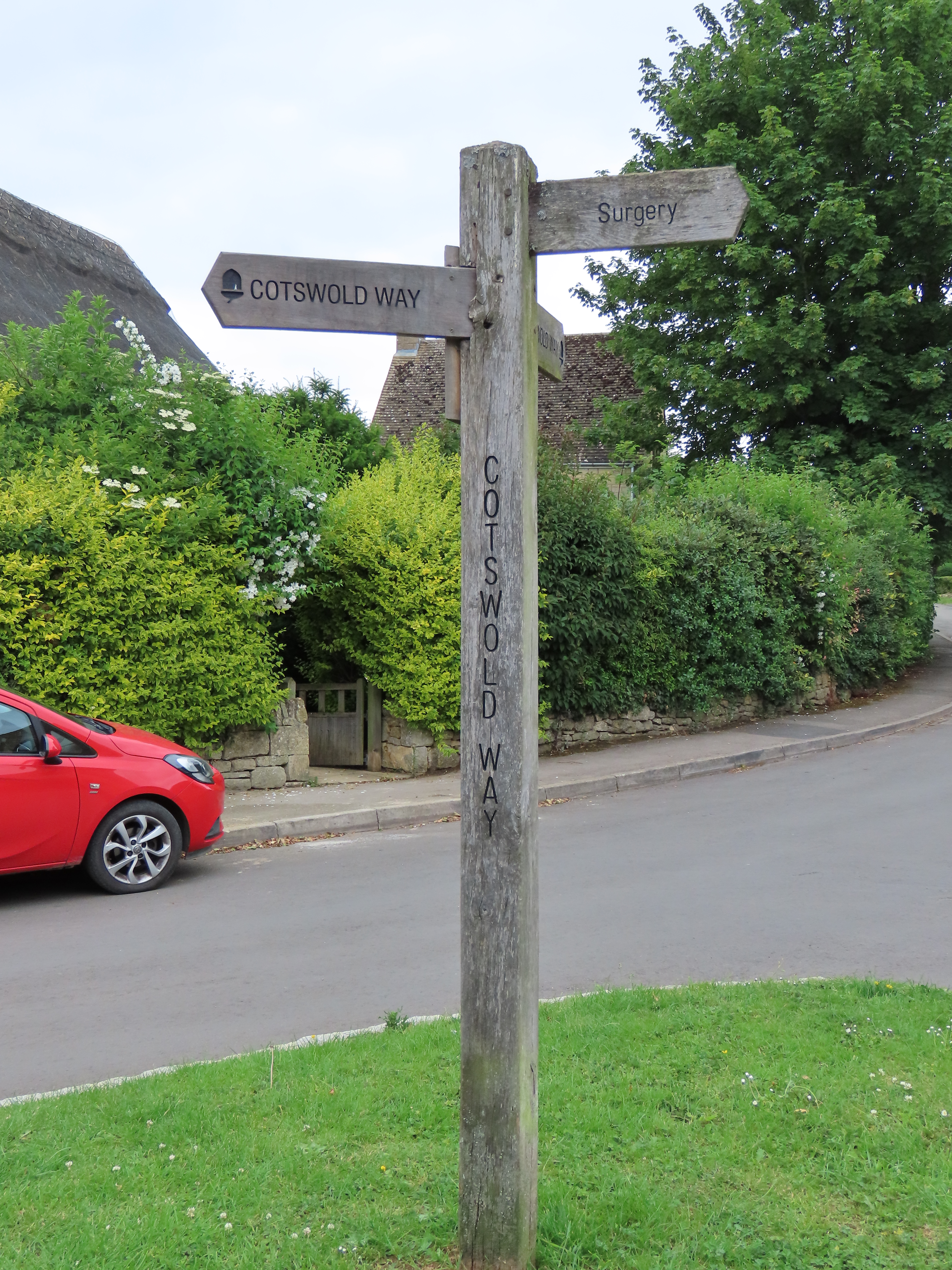 Trish suggested starting small with a short walk up to Dover’s Hill for the views. I tried to follow the map she’d given me but was soon wandering aimlessly on the road behind the hotel ’til I found a gentleman working in his garden. He puzzled over the map then sent me further down the road. And there it was, a weathered grey Cotswold Way sign, starting point for an eight-day, 164-km journey that would take one to Bath if one had eight days (I had five) and could handle walking up to 20 km a day.