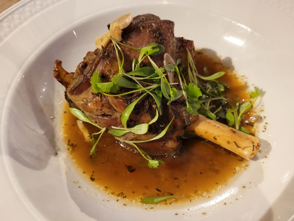 From the familiar Greek fare, including traditional and meatless eggplant moussaka, I chose a starter of delectable grilled octopus from Galicia, Spain. For a main I couldn’t resist the slow-roasted local lamb shank, Kleftiko, one of many recipes Alexiou inherited from his mother. It was so rich and flavourful I was sad to reach the last tender nugget of meat.