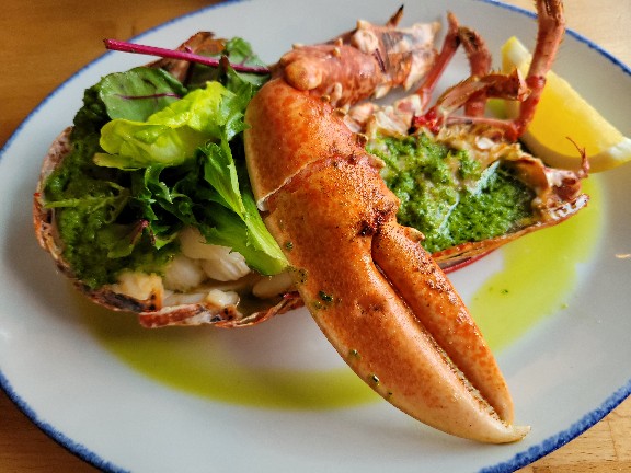 On the server’s recommendation I ordered a half a Cornish native lobster poached in garlic butter. These blue lobsters, which turn red when cooked, are delivered daily from the coast of Cornwall 300 km to the southwest so they’re super fresh. And fabulously sweet and delicious, I discovered, especially if you ignore the $50 price! The server suggested a refreshing glass of Picpoul de Pinet, an ancient white grape from France’s Languedoc-Roussillon that easily rivals Pinot Grigio or Sauvignon Blanc.