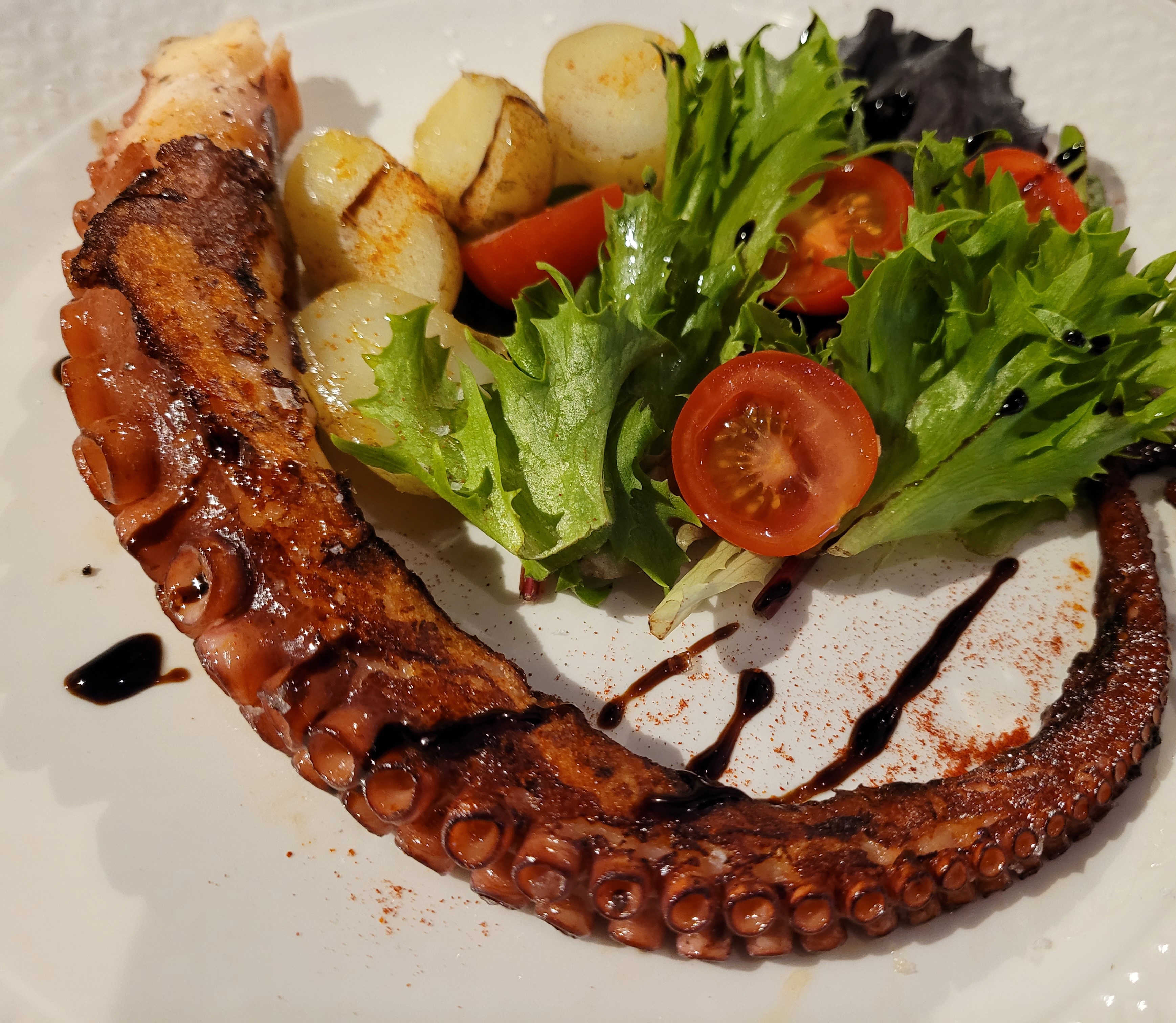 From the familiar Greek fare, including traditional and meatless eggplant moussaka, I chose a starter of delectable grilled octopus from Galicia, Spain. For a main I couldn’t resist the slow-roasted local lamb shank, Kleftiko, one of many recipes Alexiou inherited from his mother. It was so rich and flavourful I was sad to reach the last tender nugget of meat.