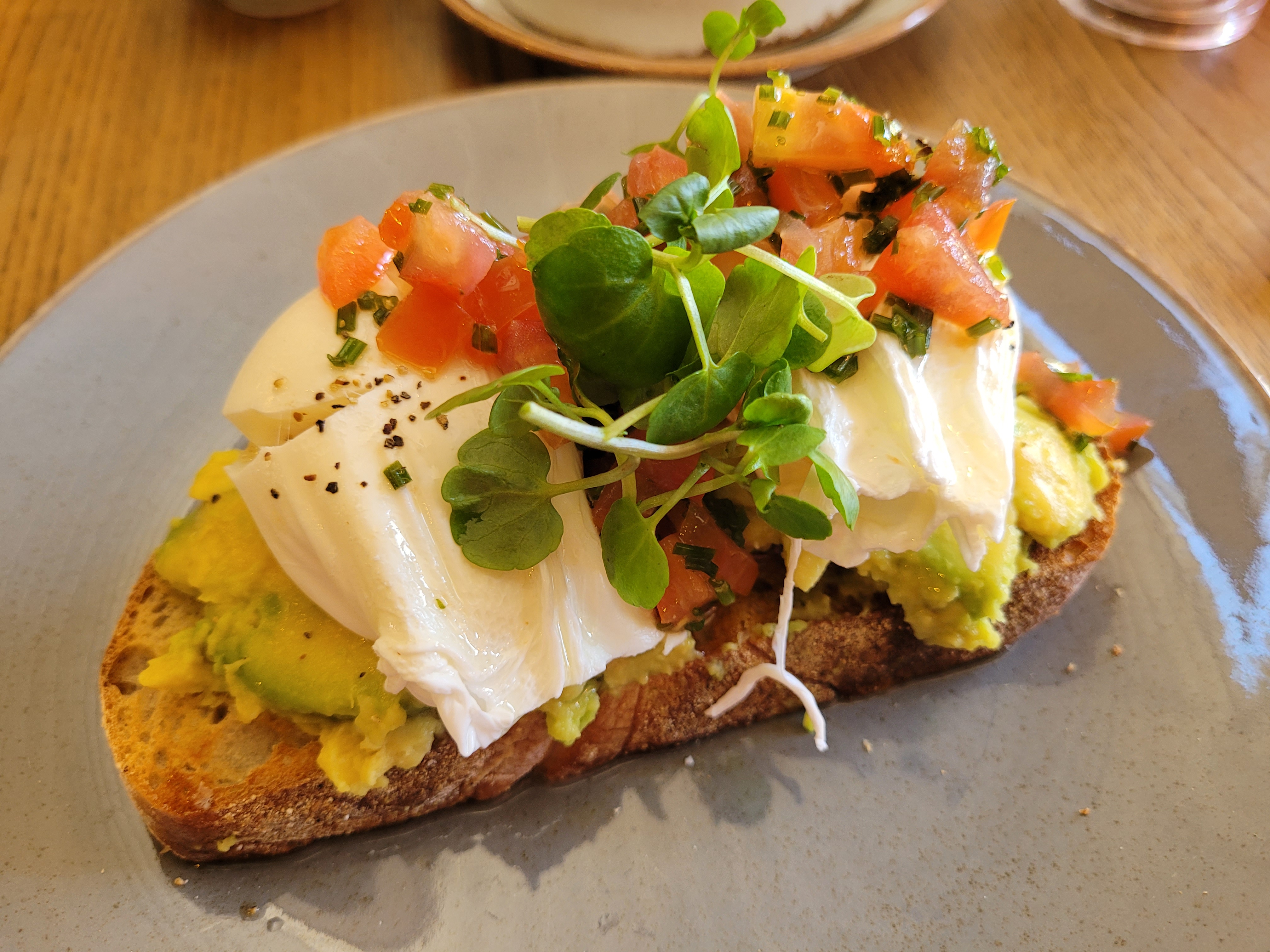 During my week in the Cotswolds I also enjoyed Eggs Benedict, Eggs Florentine with spinach, scrambled eggs with smoked salmon and oatmeal porridge topped with rhubarb-apple compote. And I must compliment the chef at the Porch House in Stow-on-the-Wold, England’s oldest inn, for his/her brilliant idea to serve poached eggs on avocado toast!