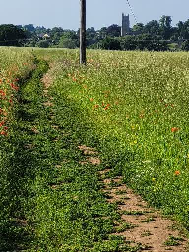 Off I went, occasionally plowing through bush when the path threatened to disappear. As I reached the poppies, St. James’ tower came into view. Easy! Just then the young woman reappeared from the other direction and waved. Back through the gates I went to the sheep pasture at Campden House then back into town as if I’d never left.