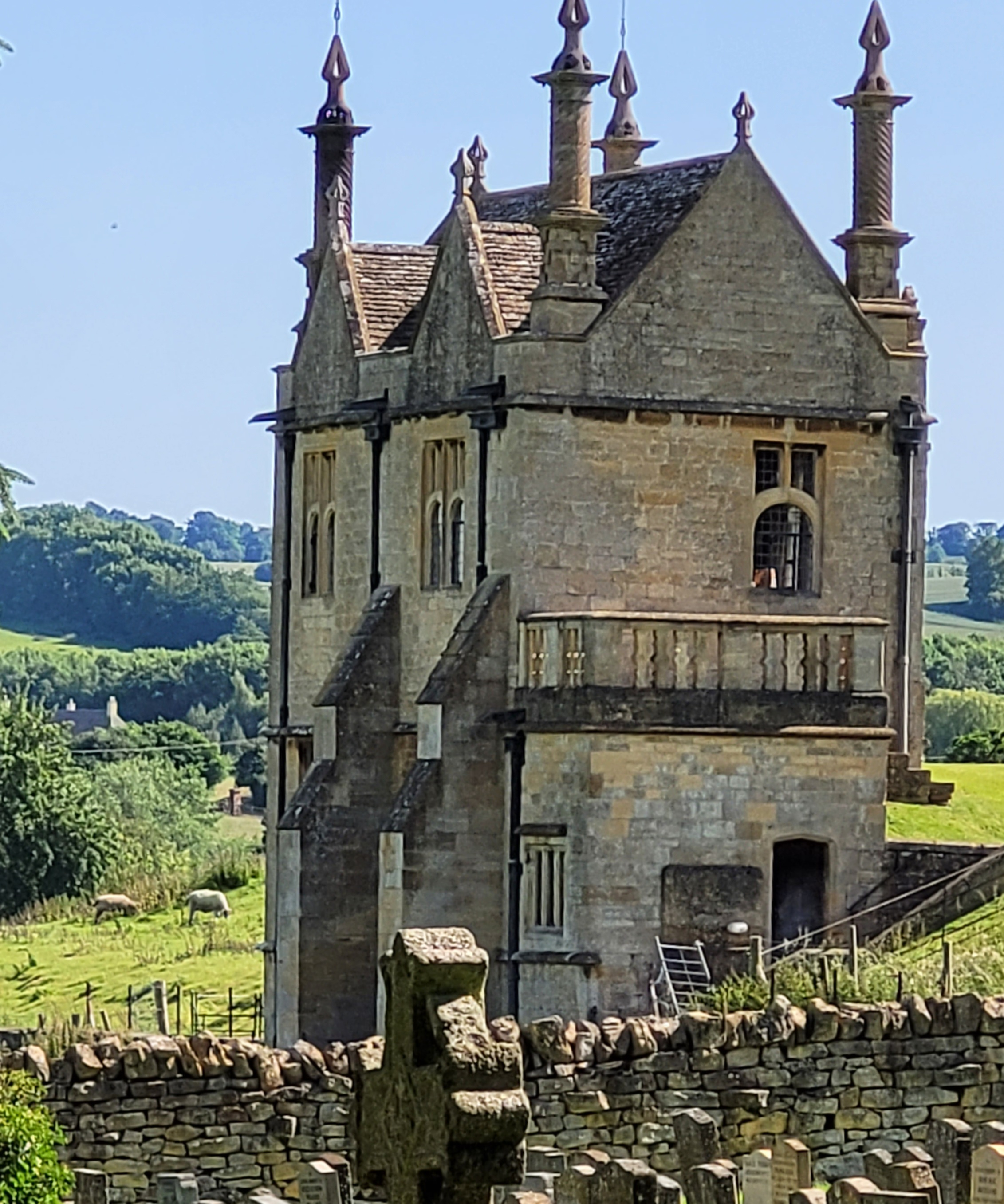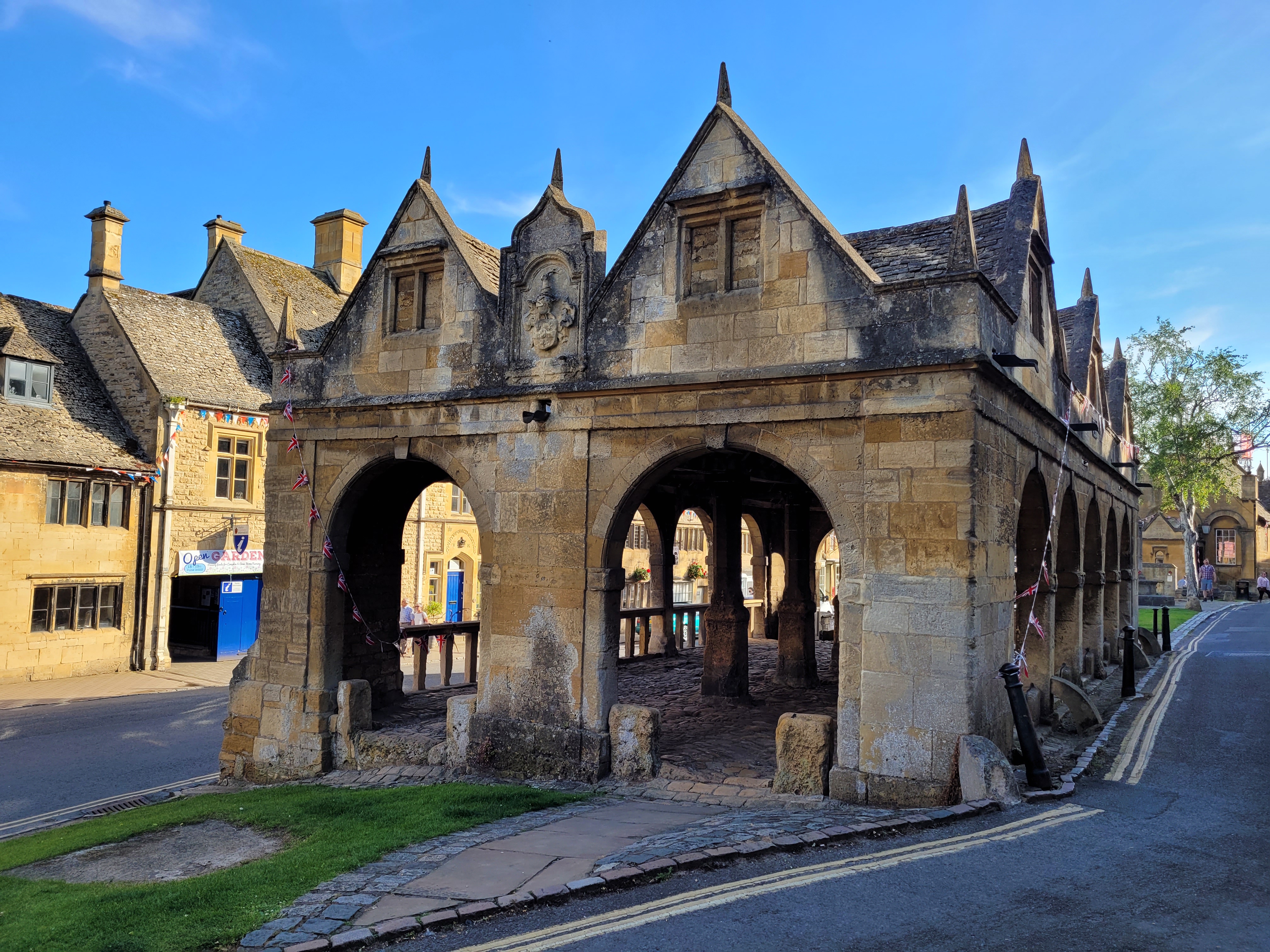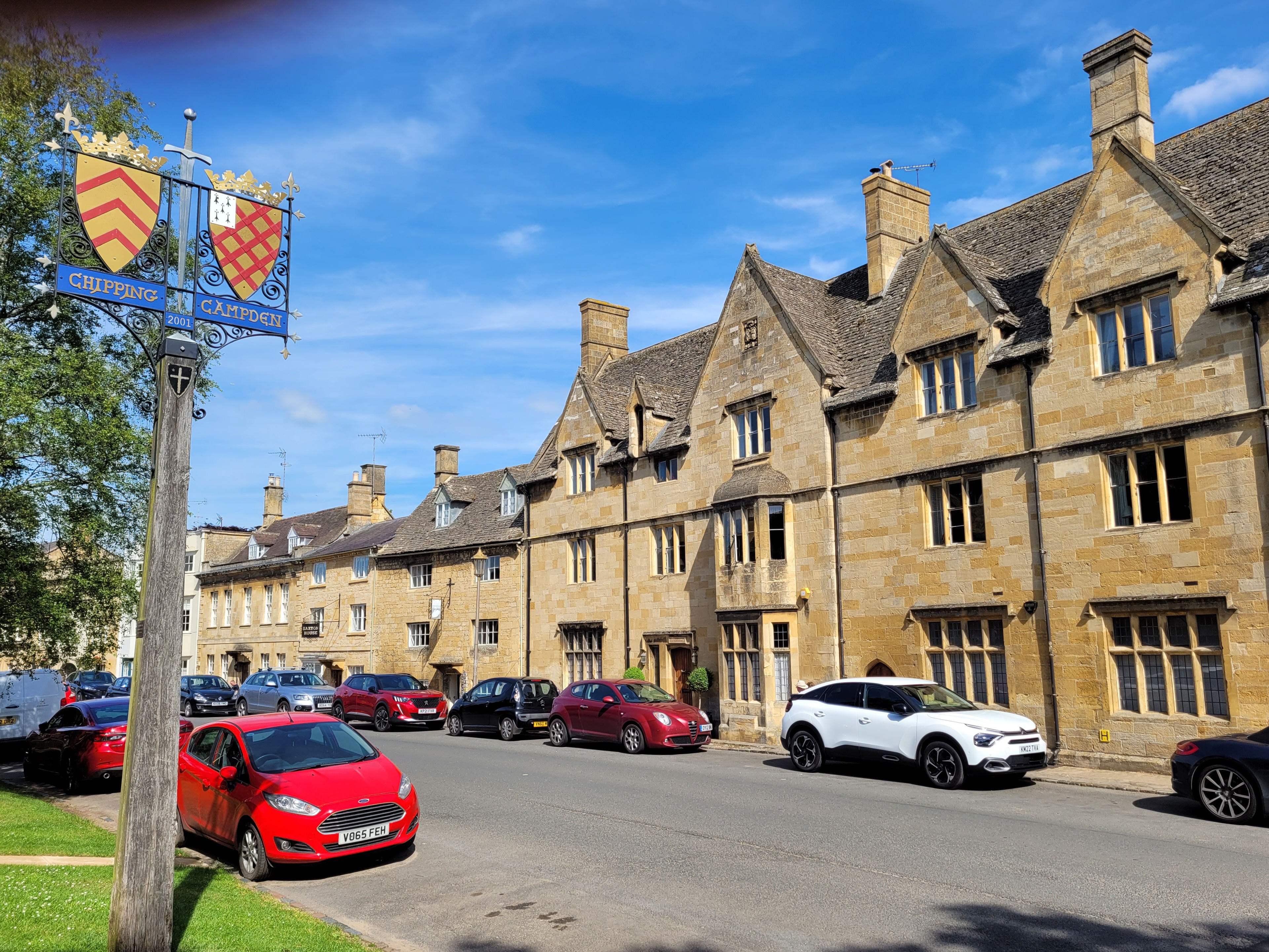 Hicks was responsible for the rather fanciful market hall on CC’s main street, sadly unused today as the floor is too uneven, and a row of 12 almhouses for the poor still used as apartments. Behind the church is a fine stone gatehouse that once led to Hicks’ palatial home, Campden House, finished in 1615 and burned to the ground in 1945 by Royalist troops. The few buildings that remain on the site, now a green park dotted with sheep, give a hint of its splendour.