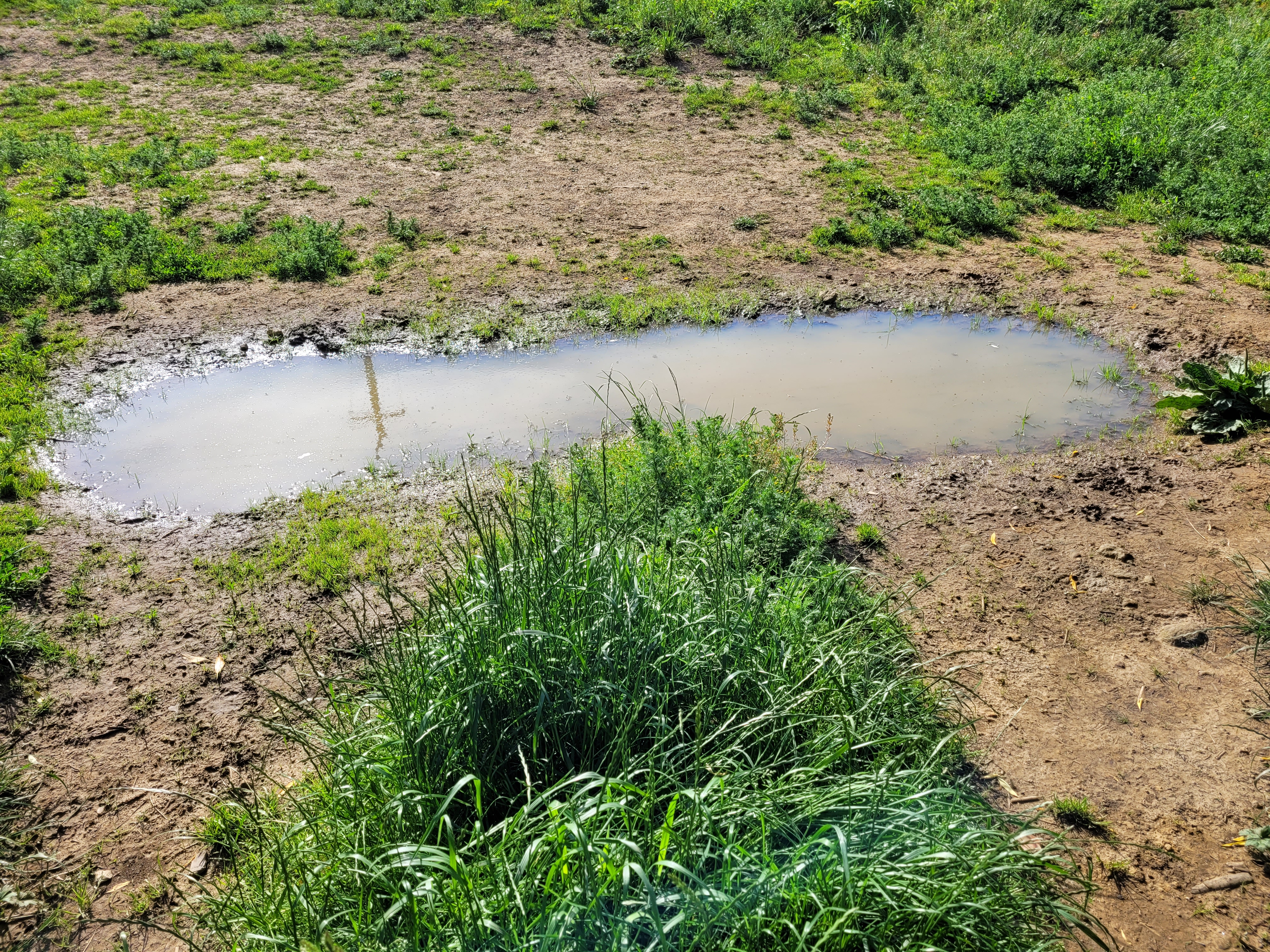 Though it hadn’t rained for two days, there was the puddle as advertised. And a gate tied with a blue string, and an old apple and cherry orchard.