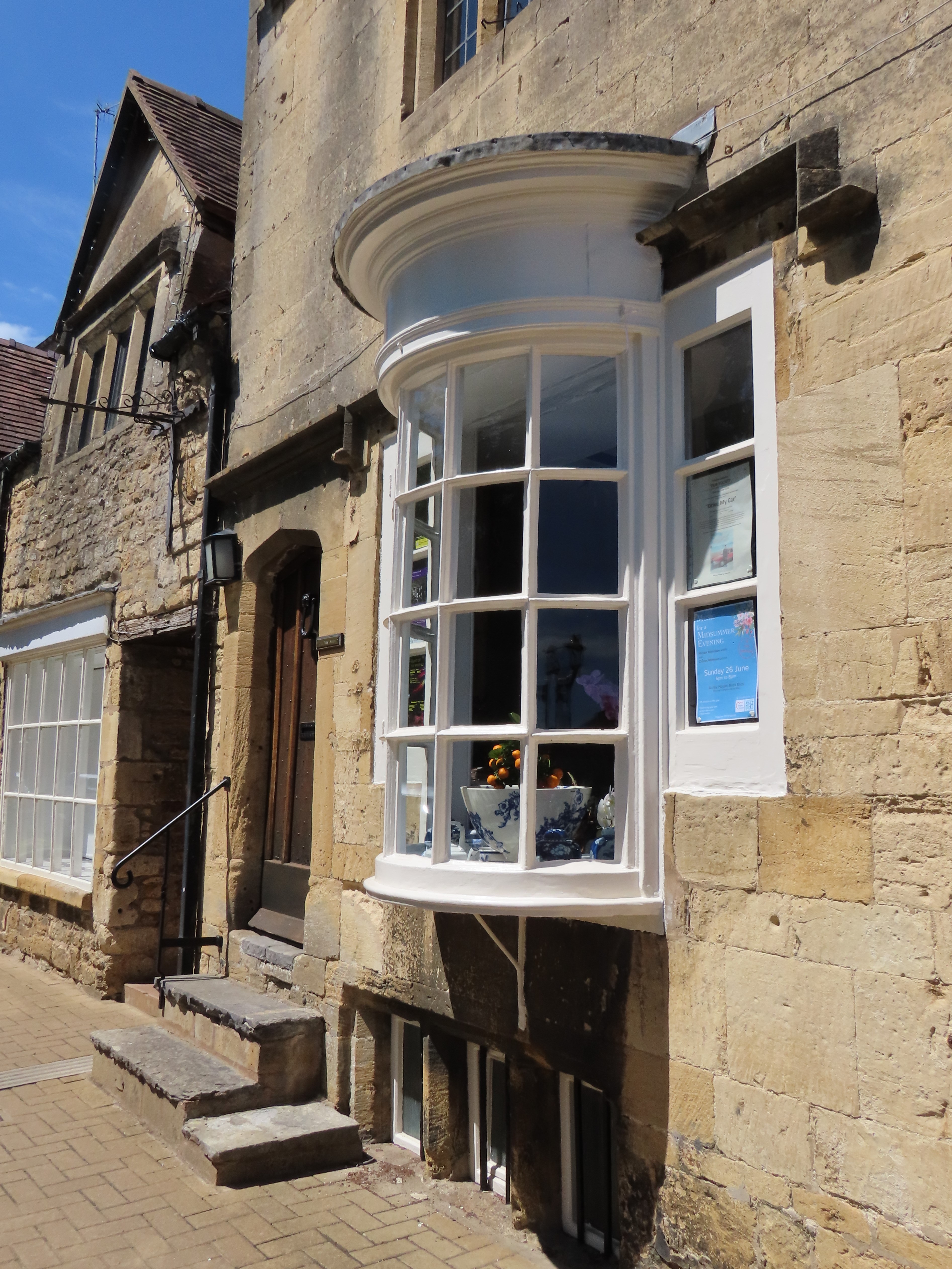 Sexton pulled back a red rug in front of the alter to reveal a brass memorial to wool merchant William Grevel and his wife. Grevel’s home, the oldest and finest on the High Street, is distinguished by its wide windows.