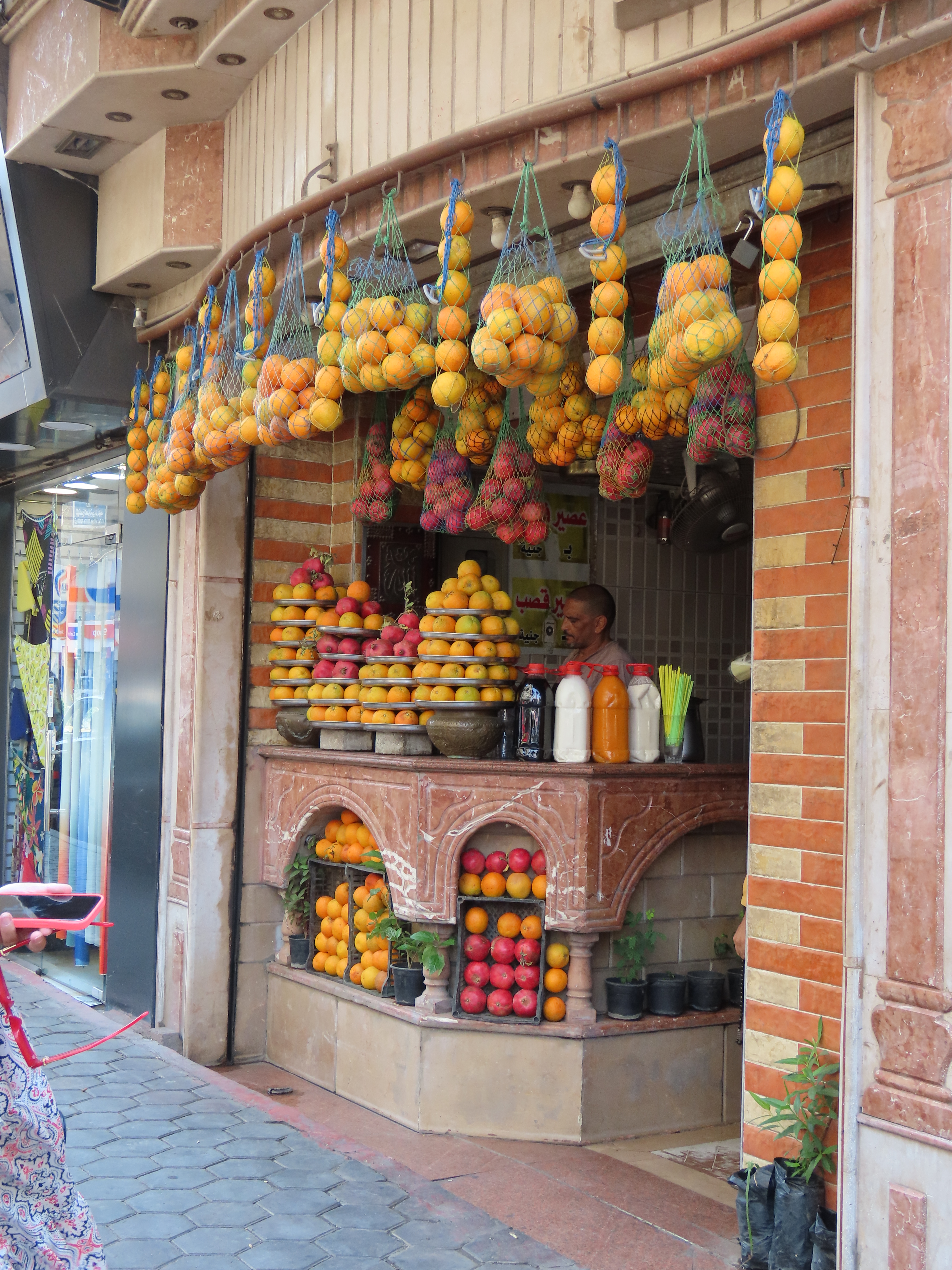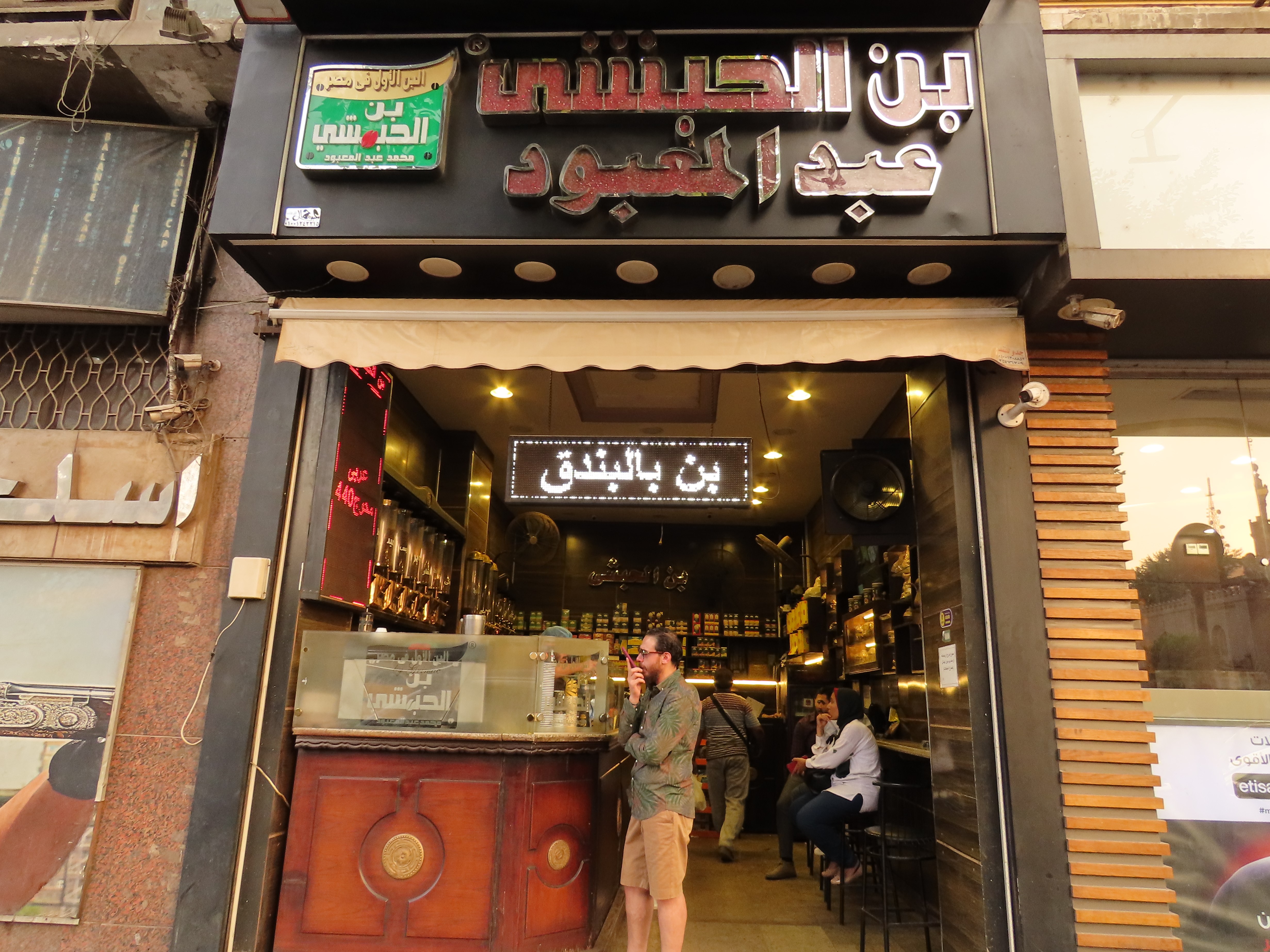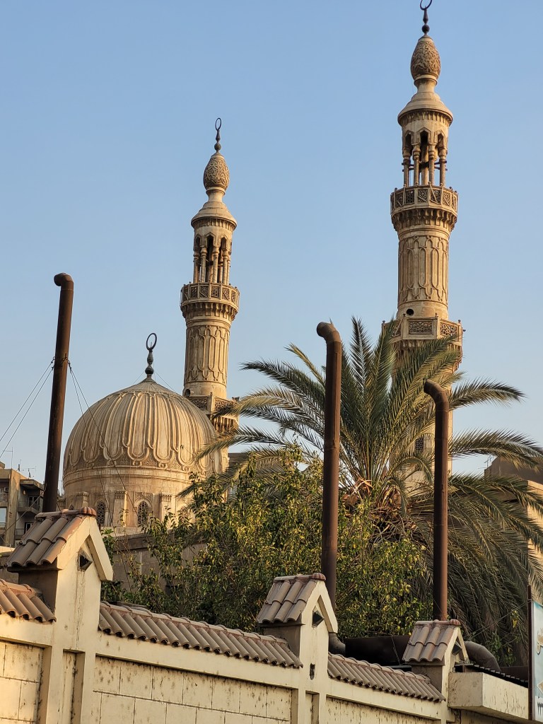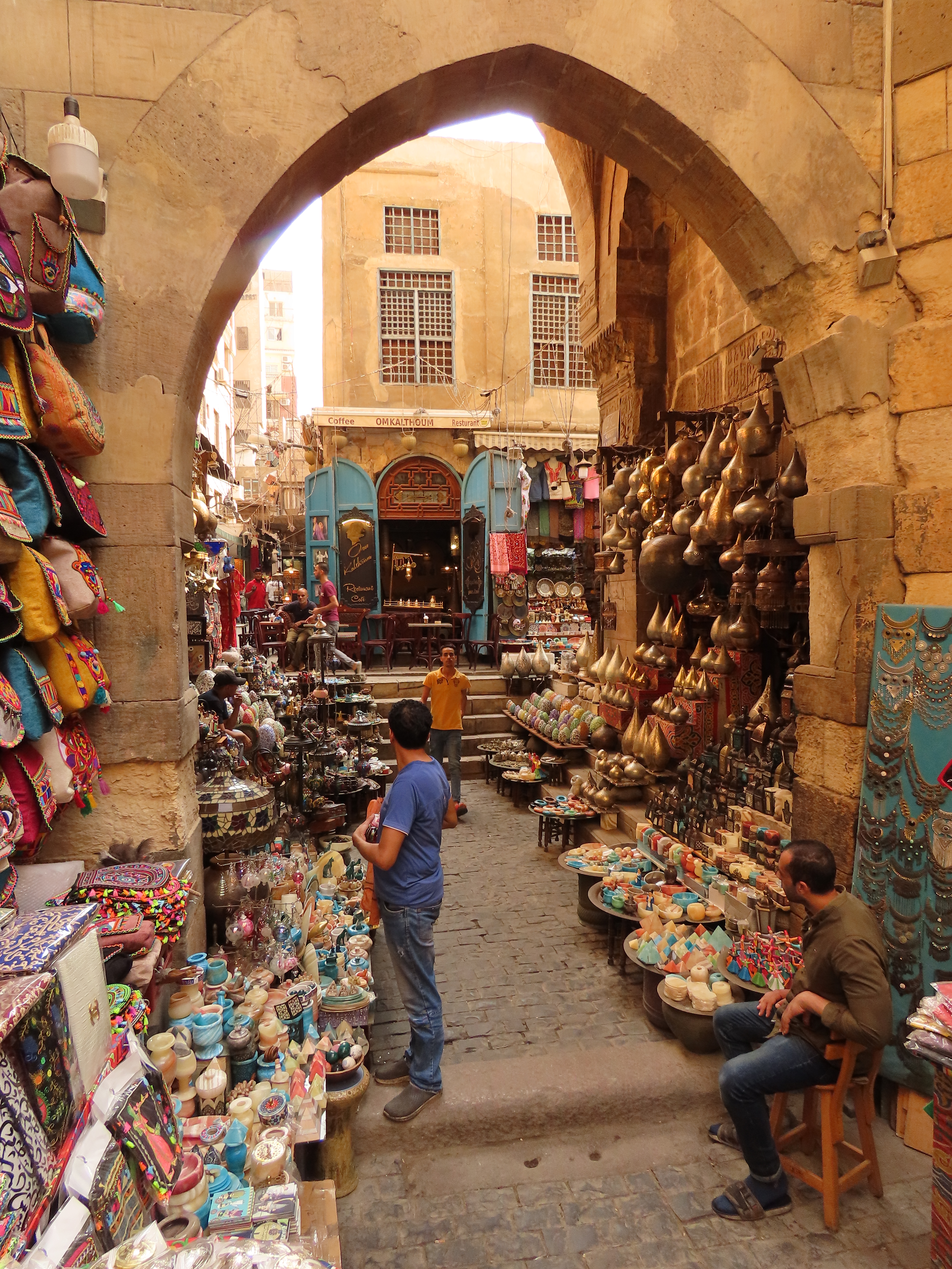 The following day we found ourselves in a more upscale neighbourhood with a few trees, graceful minarets, stately government buildings, coffee shops and useful places like the hole-in-the-wall tech shop where we had fun buying a selfie stick (for the Pyramids) and new cell phone covers. Of course the salesman didn’t have any selfie sticks in stock but no worries, he called a friend, or perhaps the owner, who arrived by motorcycle a good 15 minutes later, wares in hand. While we waited he found us chairs to sit on and produced an older gentleman who spoke English. Who translated as the guys smoking shisha next door explained how they heat the flavoured charcoal pellets for their hookah pipe.