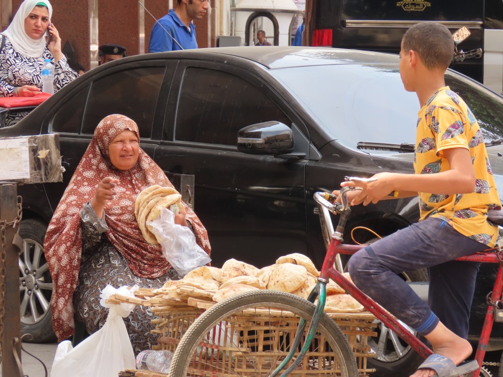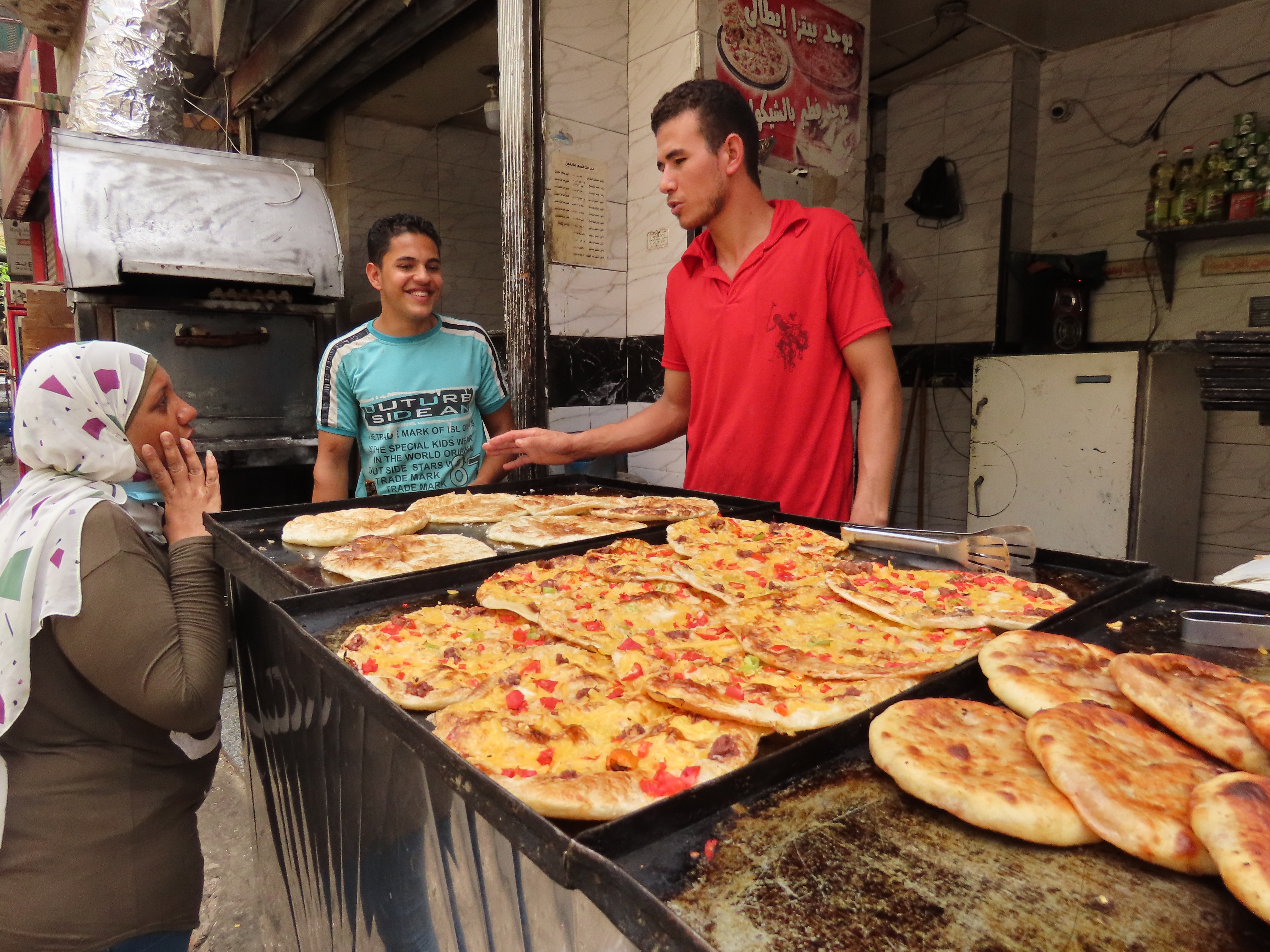Finding a place to eat proved more difficult than I imagined, partly because most signs were in Arabic, of course! Like the water, Egypt’s street food isn’t recommended for tourists, which made it hard to enjoy the tasty meat-filled cheese and tomato-topped pizzette I bought for a few piastres.