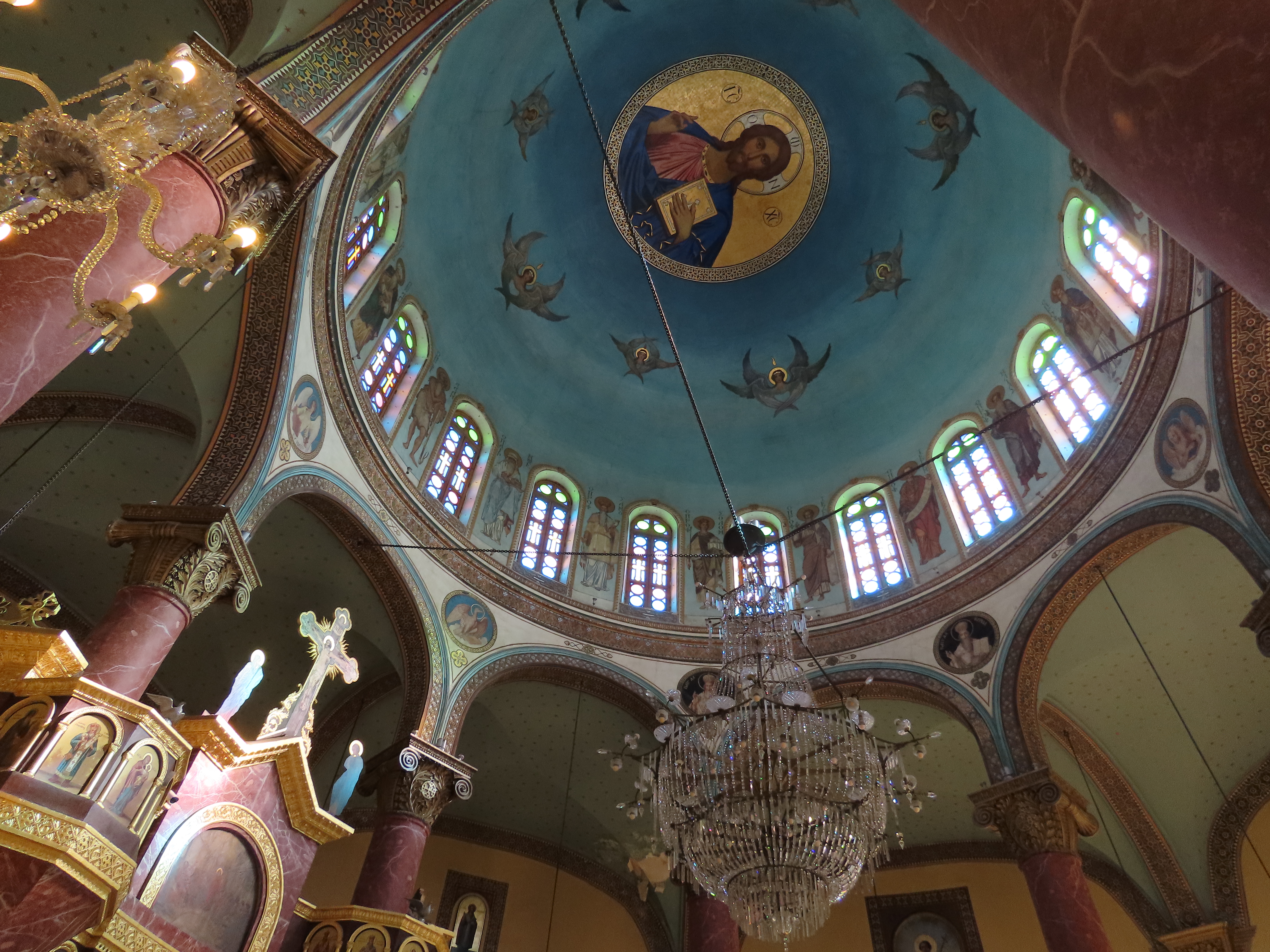 On our last day we discovered Cairo’s Coptic Christian churches. To reach them we walked for miles in the heat following a blue iPhone arrow, past hi-rise residential areas, crossing expressways and through narrow alleys with donkey carts and piles of garbage. At last we found a small church with a welcoming guard, who introduced us to a smiling man who gave us a tour in Arabic. Saint George slaying the dragon is a familiar theme. Several major streets later we stumbled on the biggest, most famous churches, surrounded by giant tour buses. We took the subway home, with help from a friendly ticket seller and a surprising number of English signs. None of our fellow passengers seemed the least bit interested in a couple of female tourists.