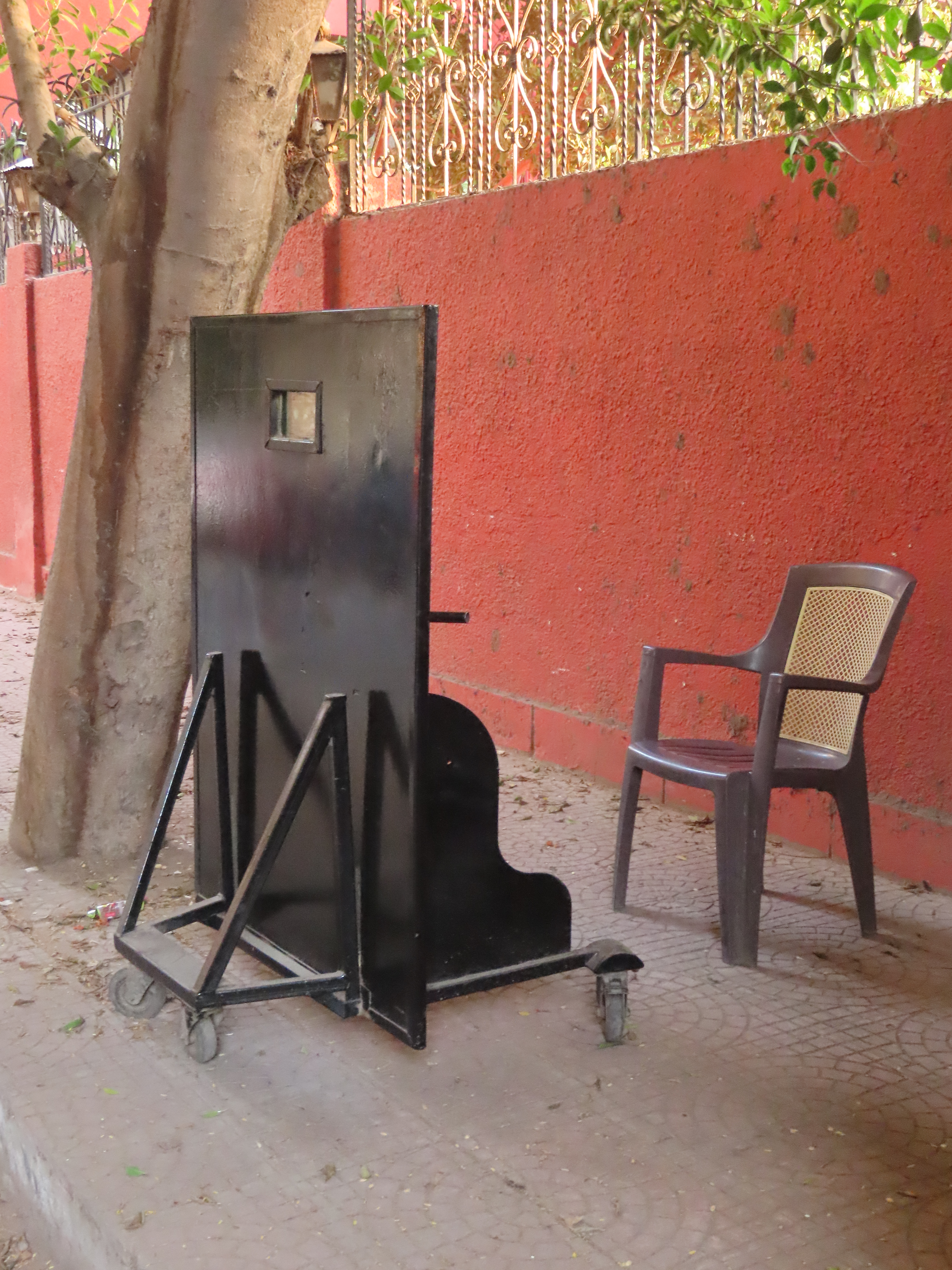 Military police were also as thick as flies. Every street corner had some kind of military presence and security types lounged in front of buildings and hotels as their colleagues inside screened guests and their belongings with a metal detector and x-ray machine. Some streets were transformed into military encampments guarded by skinny uniformed kids in lop-sided helmets who stood behind a metal shield with a slit holding a rifle. Occasionally a gate would open to let out a fast-moving convoy of menacing black SUV’s with dark windows. Cops also guarded building entrances widened with concrete barrier, forcing pedestrians to walk in traffic rather than across the empty sidewalk before them.